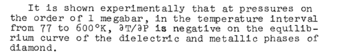 It is shown experimentally that at pressures on the order of 1 megabar, in the temperature interval from 77 to 600°K, üô/üò is negative on the equilibrium curve of the dielectric and metallic phases of diamond.
