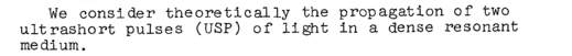 We consider theoretically the propagation of two ultrashort pulses (USP) of light in a dense resonant medium.