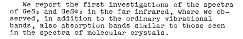 We report the first investigations of the spectra of GeS2 and GeSe2 in the far infrared, where we observed, in addition to the ordinary vibrational bands, also absorption bands similar to those seen in the spectra of molecular crystals.