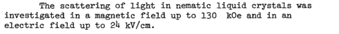 The scattering of light in nematic liquid crystals was investigated in a magnetic field up to 130 kOe and in an electric field up to 2h kV/cm.