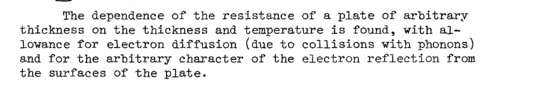 The dependence of the resistance of a plate of arbitrary thickness on the thickness and temperature is found, with allowance for electron diffusion (due to collisions with phonons) and for the arbitrary character of the electron reflection from the surfaces of the plate.
