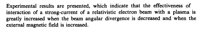 Experimental results are presented, which indicate that the effectiveness of interaction of a strong-current of a relativistic electron beam with a plasma is greatly increased when the beam angular divergence is decreased and when the external magnetic field is increased.