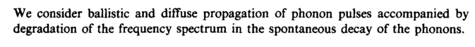 We consider ballistic and diffuse propagation of phonon pulses accompanied by degradation of the frequency spectrum in the spontaneous decay of the phonons.