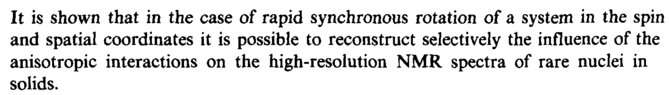 It is shown that in the case of rapid synchronous rotation of a system in the spin and spatial coordinates it is possible to reconstruct selectively the influence of the anisotropic interactions on the high-resolution NMR spectra of rare nuclei in solids.