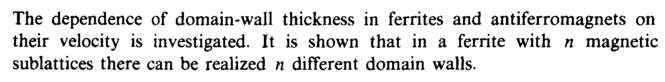 The dependence of domain-wall thickness in ferrites and antiferromagnets on their velocity is investigated. It is shown that in a ferrite with η magnetic sublattices there can be realized η different domain walls.