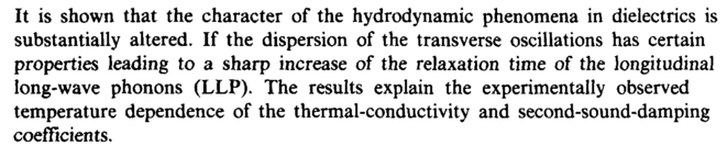 It is shown that the character of the hydrodynamic phenomena in dielectrics is substantially altered. If the dispersion of the transverse oscillations has certain properties leading to a sharp increase of the relaxation time of the longitudinal long-wave phonons (LLP). The results explain the experimentally observed temperature dependence of the thermal-conductivity and second-sound-damping coefficients.