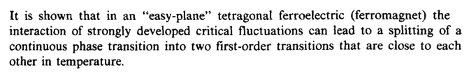 It is shown that in an "easy-plane" tetragonal ferroelectric (ferromagnet) the interaction of strongly developed critical fluctuations can lead to a splitting of a continuous phase transition into two first-order transitions that are close to each other in temperature.