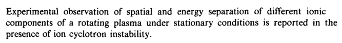 Experimental observation of spatial and energy separation of different ionic components of a rotating plasma under stationary conditions is reported in the presence of ion cyclotron instability.