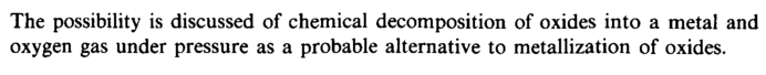 The possibility is discussed of chemical decomposition of oxides into a metal and oxygen gas under pressure as a probable alternative to metallization of oxides.