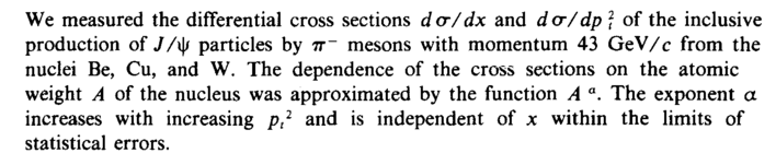 We measured the differential cross sections dcr/dx and άσ/ dp] of the inclusive production of //ψ particles by π" mesons with momentum 43 GeV/c from the nuclei Be, Cu, and W. The dependence of the cross sections on the atomic weight A of the nucleus was approximated by the function A a. The exponent a increases with increasing pt2 and is independent of χ within the limits of statistical errors.