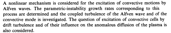 A nonlinear mechanism is considered for the excitation of convective motions by Alfven waves. The parametric-instability growth rates corresponding to this process are determined and the coupled turbulence of the Alfven wave and of the convective mode is investigated. The question of excitation of convective cells by drift turbulence and of their influence on the anomalous diffusion of the plasma is also considered.