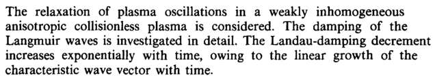 The relaxation of plasma oscillations in a weakly inhomogeneous anisotropic collisionless plasma is considered. The damping of the Langmuir waves is investigated in detail. The Landau-damping decrement increases exponentially with time, owing to the linear growth of the characteristic wave vector with time.
