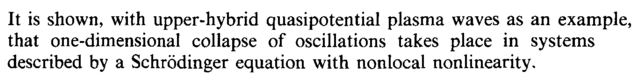 It is shown, with upper-hybrid quasipotential plasma waves as an example, that one-dimensional collapse of oscillations takes place in systems described by a Schrodinger equation with nonlocal nonlinearity*