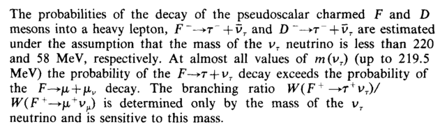 Decay of a charmed meson into a heavy lepton, and the mass of the