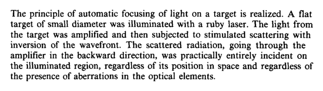 The principle of automatic focusing of light on a target is realized. A flat target of small diameter was illuminated with a ruby laser. The light from the target was amplified and then subjected to stimulated scattering with inversion of the wavefront. The scattered radiation, going through the amplifier in the backward direction, was practically entirely incident on the illuminated region, regardless of its position in space and regardless of the presence of aberrations in the optical elements.
