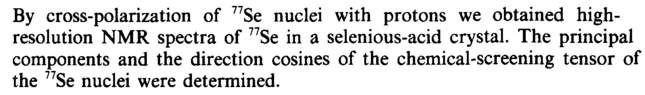 By cross-polarization of 77Se nuclei with protons we obtained high-resolution NMR spectra of 77Se in a selenious-acid crystal. The principal components and the direction cosines of the chemical-screening tensor of the 77Se nuclei were determined.
