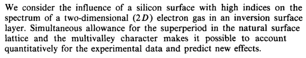 We consider the influence of a silicon surface with high indices on the spectrum of a two-dimensional {2D) electron gas in an inversion surface layer. Simultaneous allowance for the superperiod in the natural surface lattice and the multivalley character makes it possible to account quantitatively for the experimental data and predict new effects.