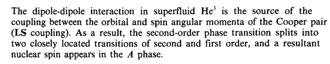 The dipole-dipole interaction in superfluid He3 is the source of the coupling between the orbital and spin angular momenta of the Cooper pair (LS coupling). As a result, the second-order phase transition splits into two closely located transitions of second and first order, and a resultant nuclear spin appears in the Λ phase.