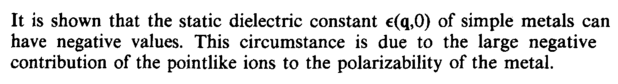It is shown that the static dielectric constant €(q,0) of simple metals can have negative values. This circumstance is due to the large negative contribution of the pointlike ions to the polarizability of the metal.