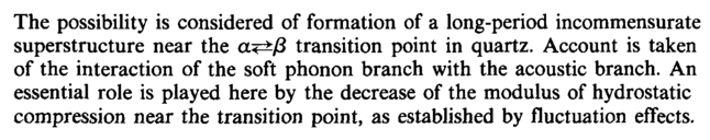The possibility is considered of formation of a long-period incommensurate superstructure near the α++β transition point in quartz. Account is taken of the interaction of the soft phonon branch with the acoustic branch. An essential role is played here by the decrease of the modulus of hydrostatic compression near the transition point, as established by fluctuation effects.