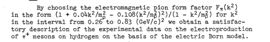 By choosing the electromagnetic pion form factor F^k2) in the form (l + 0.0Uk2/m2 0.108(k2/m£)2)/(l k2/m§) for k2 in the interval from 0.26 to 0.83 (GeV/c)2 we obtain a satisfactory description of the experimental data on the electroproduction of π+ mesons on hydrogen on the basis of the electric Born model.