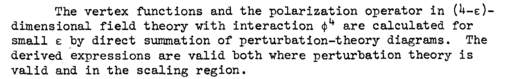 The vertex functions and the polarization operator in (U-ε)-dimensional field theory with interaction фц are calculated for small ε by direct summation of perturbation-theory diagrams. The derived expressions are valid both where perturbation theory is valid and in the scaling region.