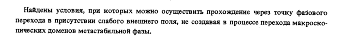 Найдены условия, при которых можно осуществить прохождение через точку фазового перехода в присутствии слабого внешнего поля, не создавая в процессе перехода макроскопических доменов метастабильной фазы.