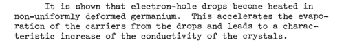 It is shown that electron-hole drops become heated in non-uniformly deformed germanium. This accelerates the evaporation of the carriers from the drops and leads to a characteristic increase of the conductivity of the crystals.