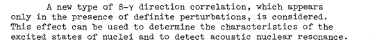 A new type of β-γ direction correlation, which appears only in the presence of definite perturbations, is considered. This effect can be used to determine the characteristics of the excited states of nuclei and to detect acoustic nuclear resonance.