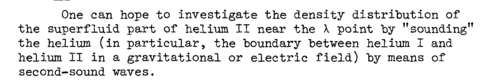 One can hope to investigate the density distribution of the superfluid part of helium II near the λ point by "sounding" the helium (in particular, the boundary between helium I and helium II in a gravitational or electric field) by means of second-sound waves.