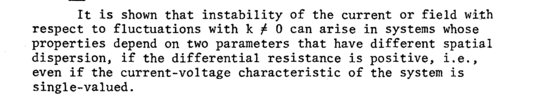 It is shown that instability of the current or field with respect to fluctuations with к ^ 0 can arise in systems whose properties depend on two parameters that have different spatial dispersion, if the differential resistance is positive, i.e., even if the current-voltage characteristic of the system is single-valued.