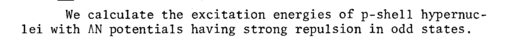 We calculate the excitation energies of p-shell hypernuc-lei with ΛΝ potentials having strong repulsion in odd states.