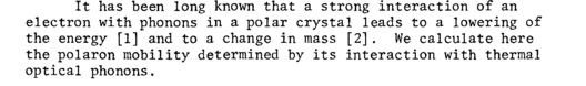 It has been long known that a strong interaction of an electron with phonons in a polar crystal leads to a lowering of the energy [1] and to a change in mass [2]. We calculate here the polaron mobility determined by its interaction with thermal optical phonons.