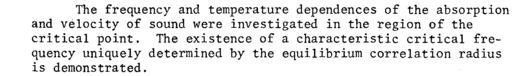 The frequency and temperature dependences of the absorption and velocity of sound were investigated in the region of the critical point. The existence of a characteristic critical frequency uniquely determined by the equilibrium correlation radius is demonstrated.