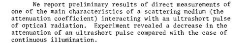 We report preliminary results of direct measurements of one of the main characteristics of a scattering medium (the attenuation coefficient) interacting with an ultrashort pulse of optical radiation. Experiment revealed a decrease in the attenuation of an ultrashort pulse compared with the case of continuous illuniination.