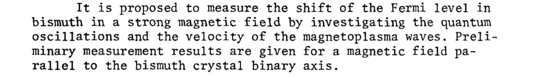It is proposed to measure the shift of the Fermi level in bismuth in a strong magnetic field by investigating the quantum oscillations and the velocity of the magnetoplasma waves. Preliminary measurement results are given for a magnetic field parallel to the bismuth crystal binary axis.