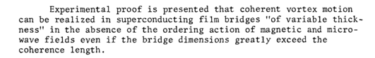 Experimental proof is presented that coherent vortex motion can be realized in superconducting film bridges "of variable thickness" in the absence of the ordering action of magnetic and microwave fields even if the bridge dimensions greatly exceed the coherence length.