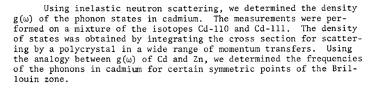 Using inelastic neutron scattering, we determined the density g(to) of the phonon states in cadmium. The measurements were performed on a mixture of the isotopes Cd-110 and Cd-111. The density of states was obtained by integrating the cross section for scattering by a polycrystal in a wide range of momentum transfers. Using the analogy between g(to) of Cd and Zn, we determined the frequencies of the phonons in cadmium for certain symmetric points of the Bril-louin zone.