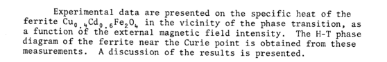 Experimental data are presented on the specific heat of the ferrite Cu0^4Cd0^6Fe204 in the vicinity of the phase transition, as a function of the external magnetic field intensity. The H-T phase diagram of the ferrite near the Curie point is obtained from these measurements. A discussion of the results is presented.
