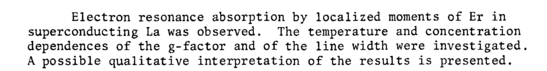 Electron resonance absorption by localized moments of Er in superconducting La was observed. The temperature and concentration dependences of the g-factor and of the line width were investigated. A possible qualitative interpretation of the results is presented.