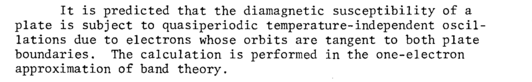 It is predicted that the diamagnetic susceptibility of a plate is subject to quasiperiodic temperature-independent oscillations due to electrons whose orbits are tangent to both plate boundaries. The calculation is performed in the one-electron approximation of band theory.