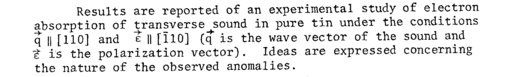 Results are reported of an experimental study of electron absorption of transverse sound in pure tin under the conditions q у [110] and ε || [Ϊ10] (q is the wave vector of the sound and t is the polarization vector). Ideas are expressed concerning the nature of the observed anomalies.