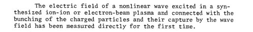 The electric field of a nonlinear wave excited in a synthesized ion-ion or electron-beam plasma and connected with the bunching of the charged particles and their capture by the wave field has been measured directly for the first time.
