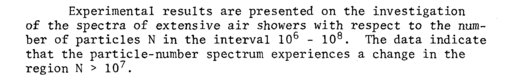 Experimental results are presented on the investigation of the spectra of extensive air showers with respect to the number of particles N in the interval 106 108. The data indicate that the particle-number spectrum experiences a change in the region Ν > 107.
