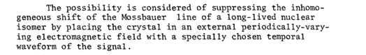 The possibility is considered of suppressing the inhomo-geneous shift of the Mossbauer line of a long-lived nuclear isomer by placing the crystal in an external periodically-varying electromagnetic field with a specially chosen temporal waveform of the signal.