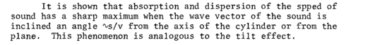 It is shown that absorption and dispersion of the spped of sound has a sharp maximum when the wave vector of the sound is inclined an angle ^s/v from the axis of the cylinder or from the plane. This phenomenon is analogous to the tilt effect.