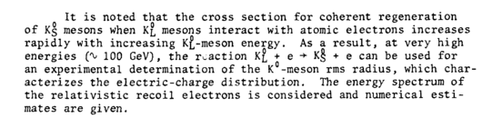 It is noted that the cross section for coherent regeneration of Kg mesons when к£ mesons interact with atomic electrons increases rapidly with increasing KL-meson energy. As a result, at very high energies (*v 100 GeV), the reaction к£ + e -*■ K§ + e can be used for an experimental determination of the K°-meson rms radius, which characterizes the electric-charge distribution. The energy spectrum of the relativistic recoil electrons is considered and numerical estimates are given.