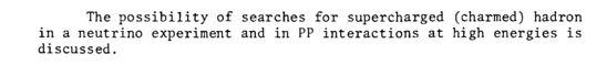 The possibility of searches for supercharged (charmed) hadron in a neutrino experiment and in PP interactions at high energies is discussed.