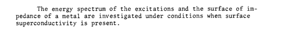 The energy spectrum of the excitations and the surface of impedance of a metal are investigated under conditions when surface superconductivity is present.