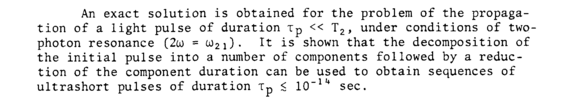 An exact solution is obtained for the problem of the propagation of a light pulse of duration τ ρ << T2, under conditions of two-photon resonance (2ω = ω2ι). It is shown that the decomposition of the initial pulse into a number of components followed by a reduction of the component duration can be used to obtain sequences of ultrashort pulses of duration τρ < 10"1** sec.